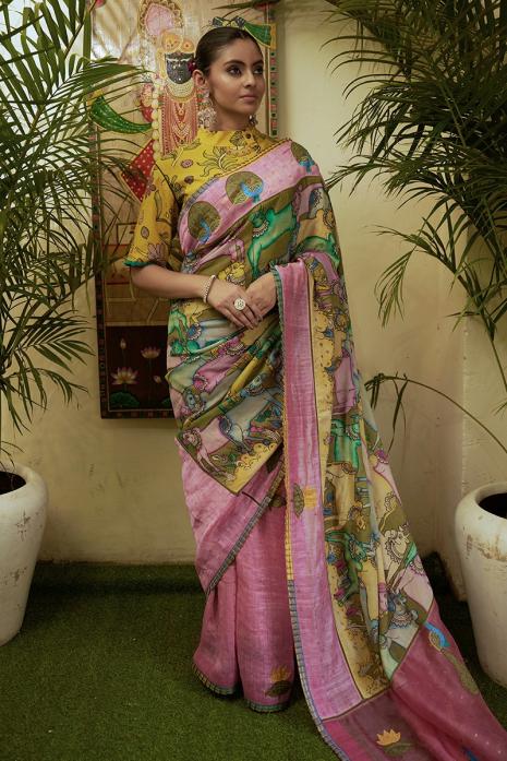Note: The blouse shown is not part of package. The saree comes with an unstitched blouse fabric.
