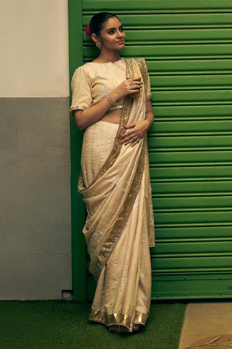 Grey Patchwork and Hand-embroidered Pichwai Saree