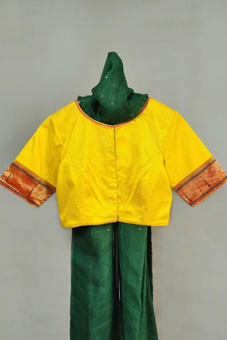 Enrich your wardrobe with the timeless elegance and cultural richness of this stunning handpainted blouse, perfect for adding a touch of sophistication to any occasion. This blouse embodies meticulous craftsmanship, featuring intricate motifs and vibrant hues inspired by traditional Pichwai art.