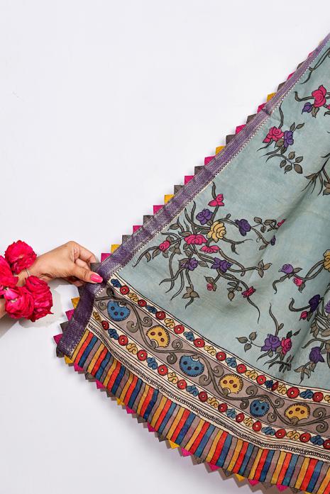 Pichwai Art Inspired Kalamkari on Handwoven Silk Dupatta.