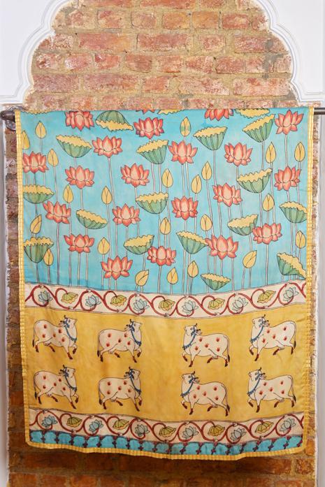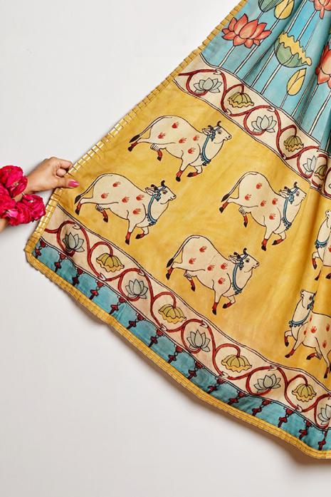 Pichwai Art Inspired Kalamkari on Handwoven Modal Silk Dupatta.