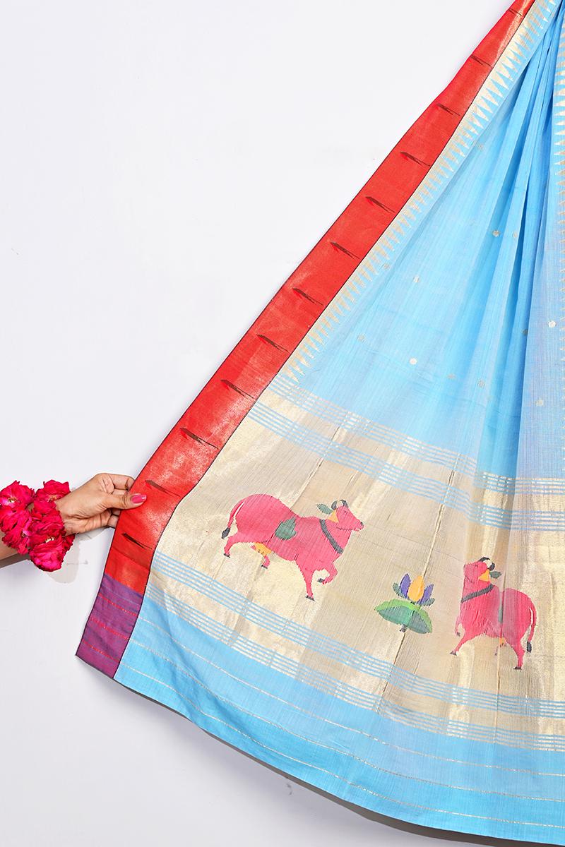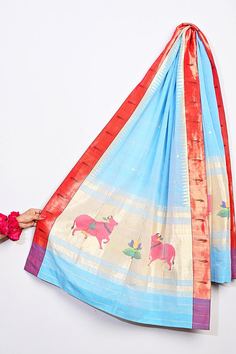 Pichwai Art Inspired Paithani on Handwoven Cotton Dupatta.
