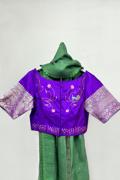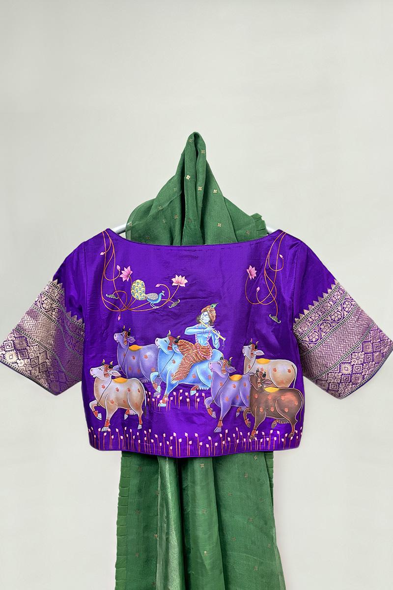 Enrich your wardrobe with the timeless elegance and cultural richness of this stunning handpainted blouse, perfect for adding a touch of sophistication to any occasion. This blouse embodies meticulous craftsmanship, featuring intricate motifs and vibrant hues inspired by traditional Pichwai art.