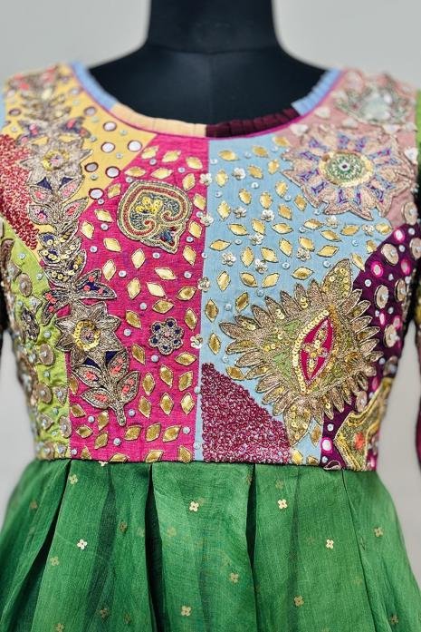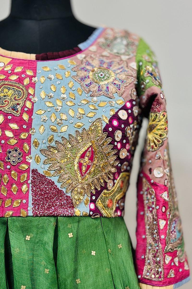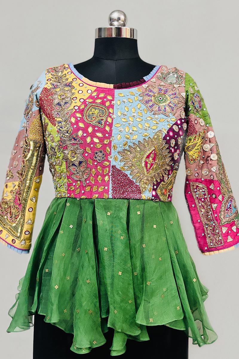 Enrich your wardrobe with the timeless elegance and cultural richness of this stunning Hand embroidered peplum, perfect for adding a touch of sophistication to any occasion. This peplum embodies meticulous craftsmanship, featuring intricate vintage embroidered patchwork.