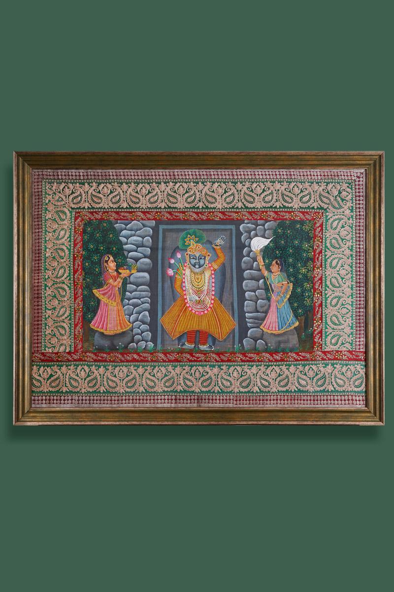 Traditional Pichwai Art Wall Paintings on Matka Silk with embroidered border by Label Pratham